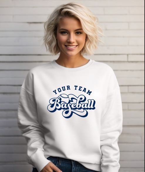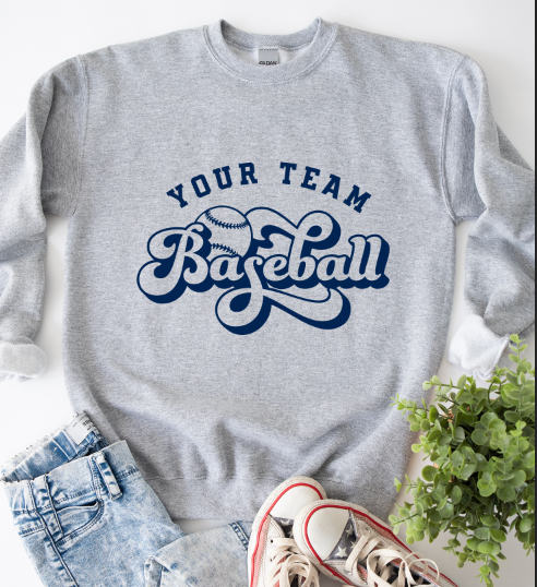 Be the star player in our Custom Team Baseball Pullover. Choose your team name and any color for a cute retro font. Show off your unique style on the field! Add a custom back with players name and number for $10! Dont see your teams color let us know and we can get it!