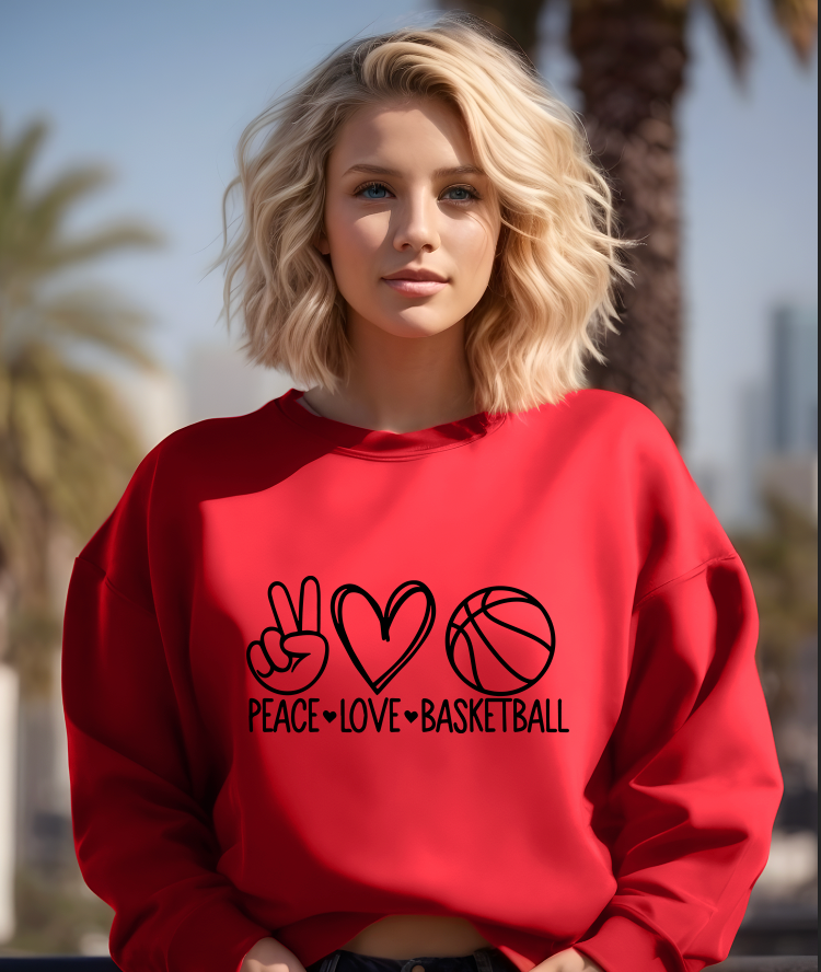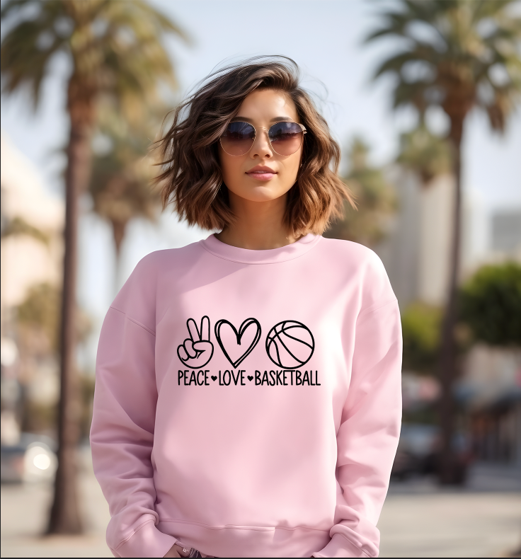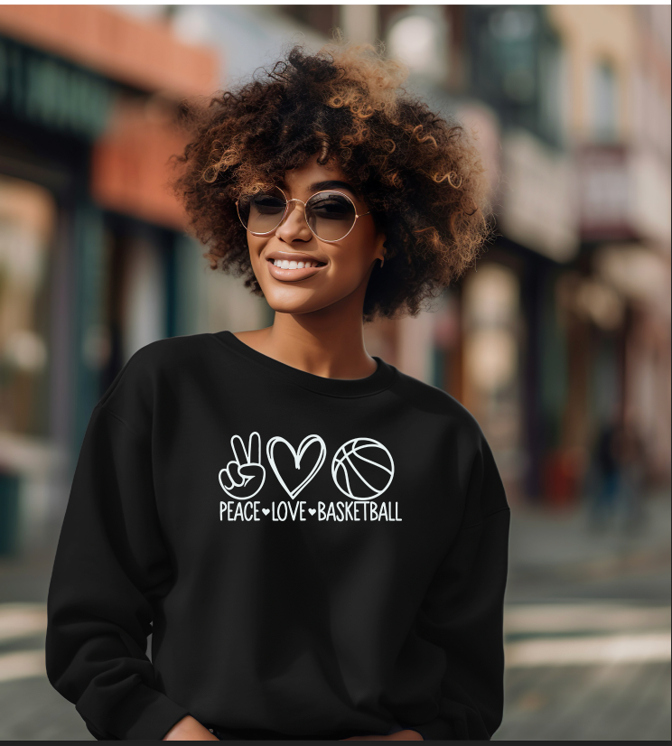 Get ready to ball in style with our Peace Love Basketball Pullover! Made with cozy fabric, it's perfect for chilly game days. Show off your love for the game with the "peace love basketball" design on the front. And for an added touch, customize the back with your favorite player's name and number. What more could you want?
