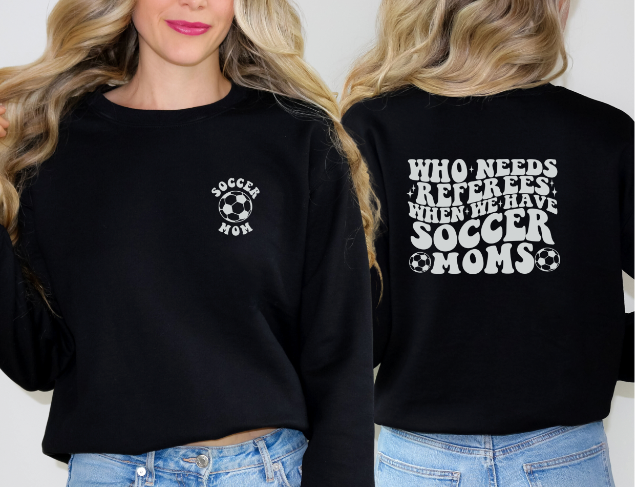 Experience the hilarious side of soccer parenting with "Who Needs Referees"! This witty shirt proudly proclaims your ability to keep the game fair and fun. A must-have for all soccer moms and dads!